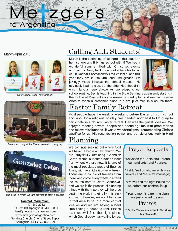 Prayer Letter- 2016- MarchApril