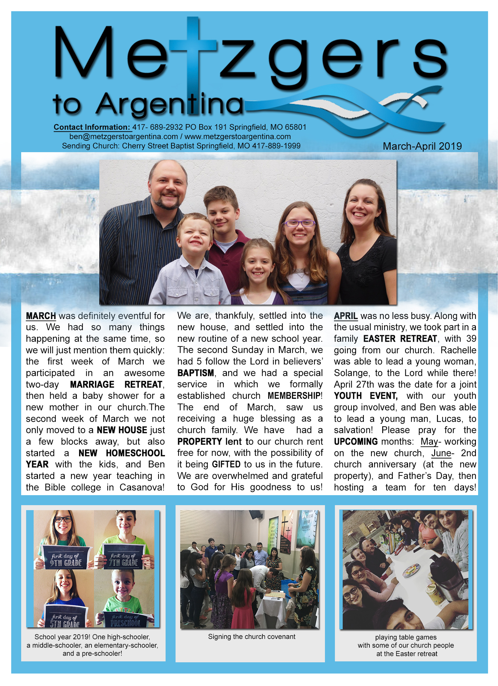 Prayer Letter- 2019- MarchApril